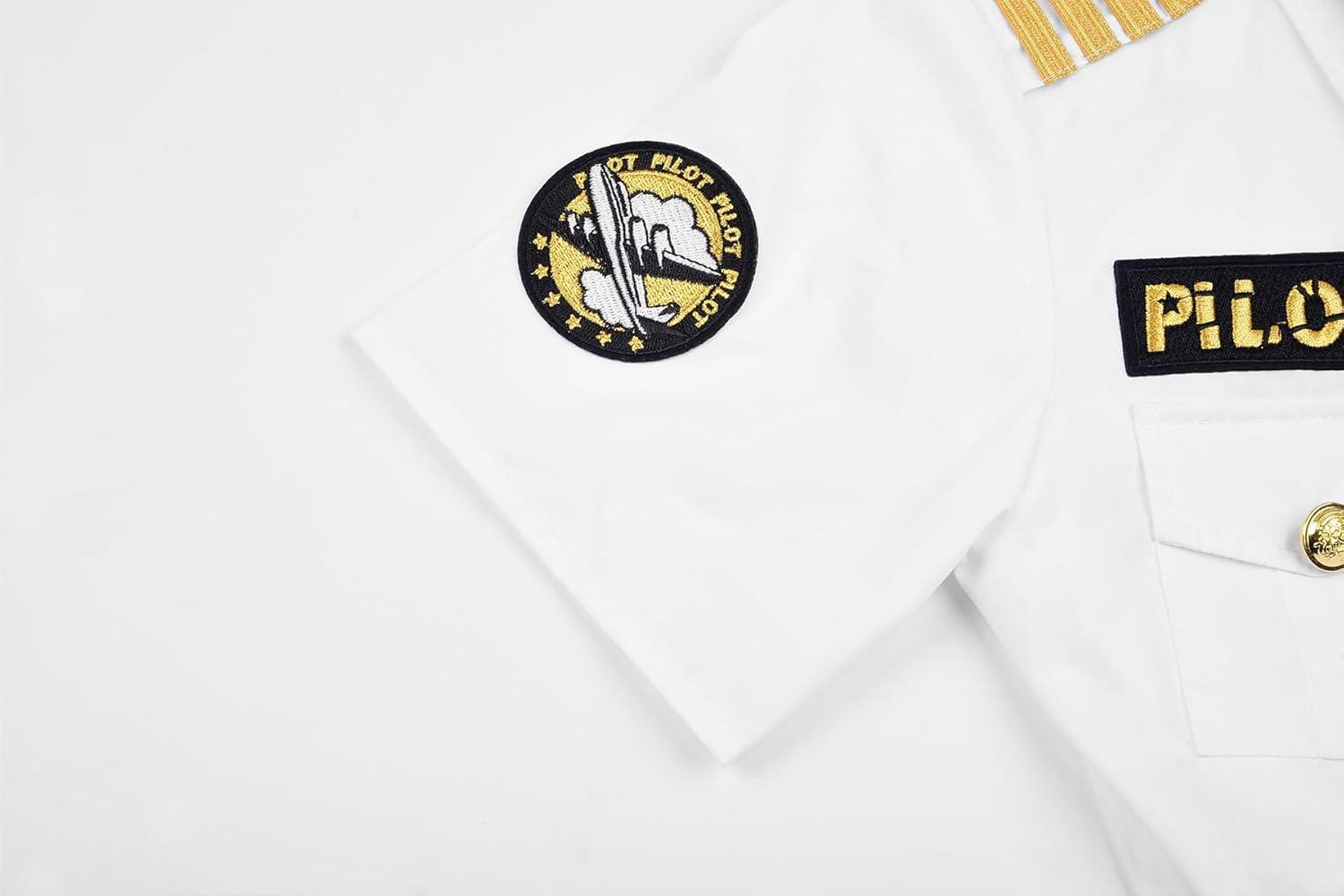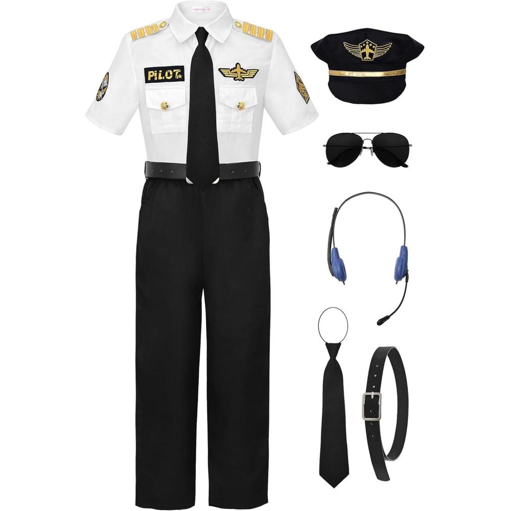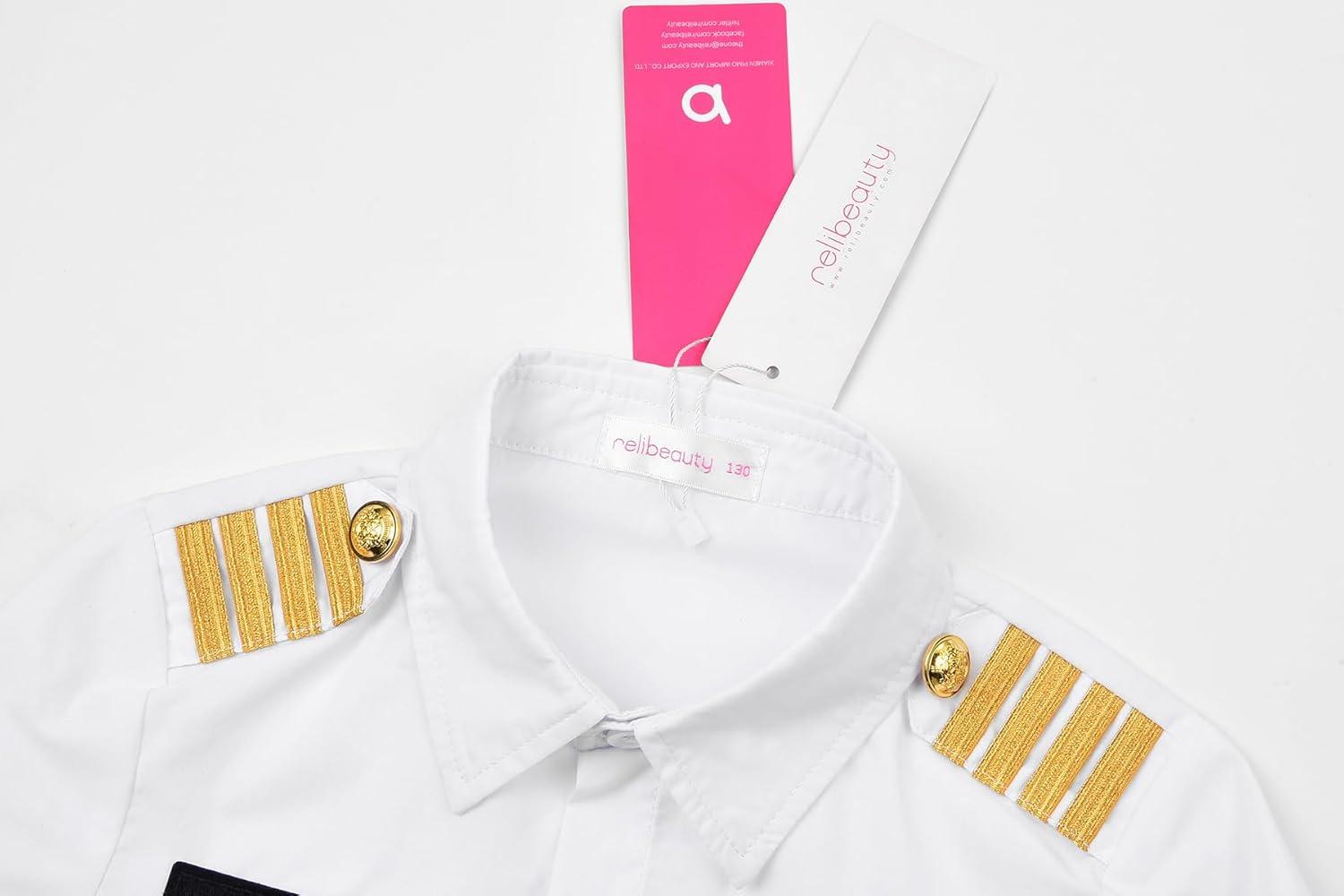 ReliBeauty Pilot Costume for Kids with Accessories Airline Captain pilot Costume Dress up Career Day(White(short Sleeve))